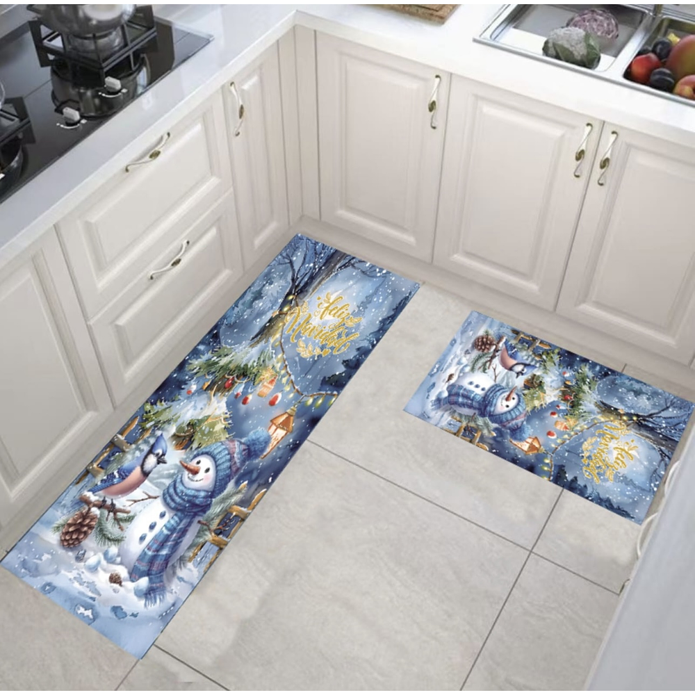 ALFOMBRA SET DE COCINA DOBLE 40x60CM + 40x120CM NAVIDAD CELESTE 2025